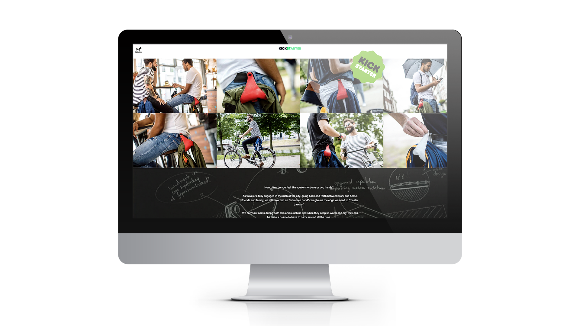 The ultimate hands-free coat carrier. Draag je jas in stijl en altijd twee handen vrij voor je telefoon, je koffie of je laptop. Super handig! ;-) Voor dit Kickstarter project verzorgde ik de stijl en het logo.